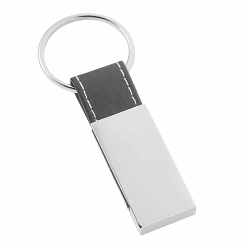 Hochwertiger Schlüsselanhänger aus Metall mit PU Schlaufe und großem Ring. Der große Metall-Part bietet sehr viel Platz für Ihr Logo.